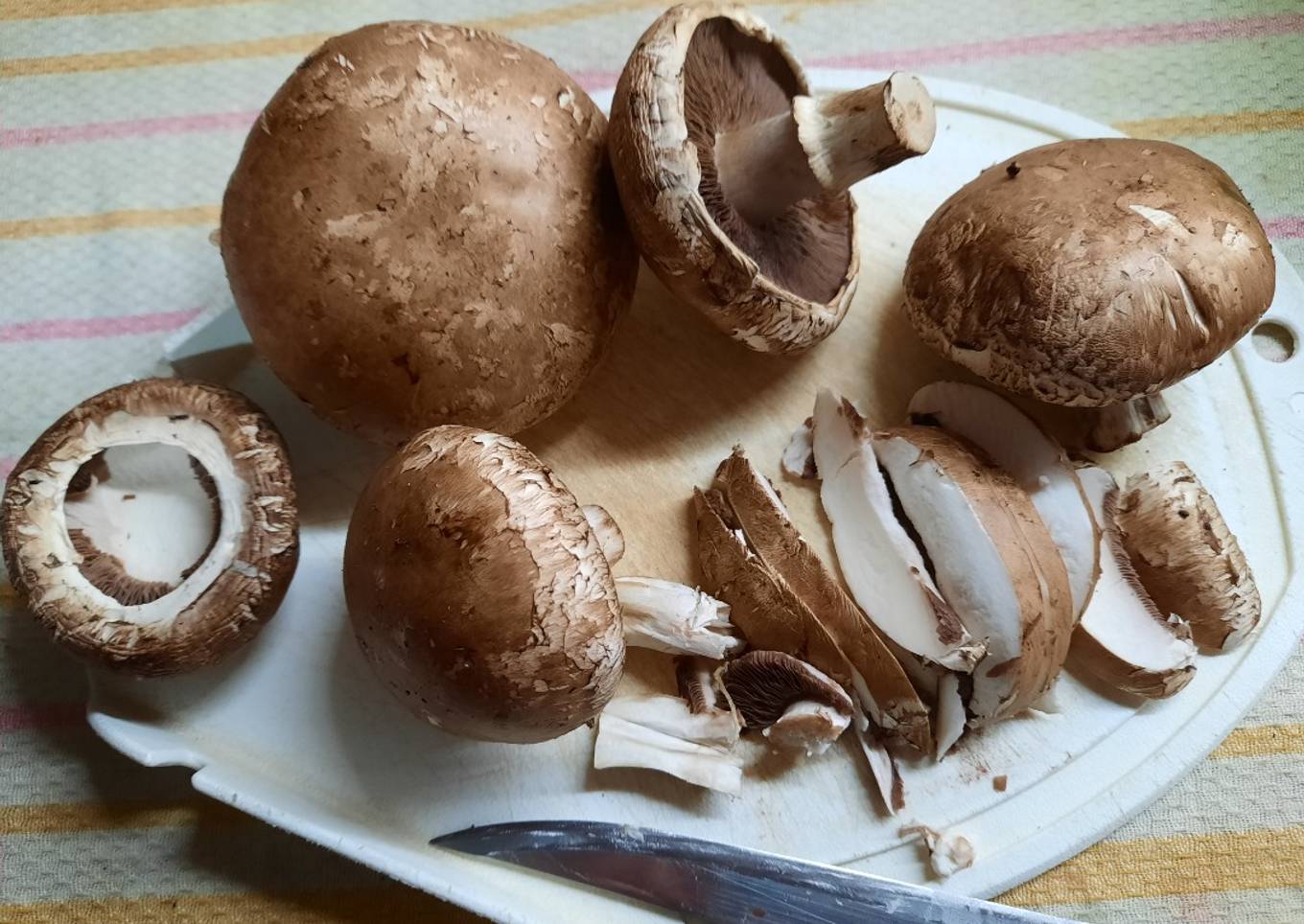 - Limpiar los hongos si tienen tierra con una servilleta de cocina, no lavar bajo el chorro de agua, filetear, cortar en laminas