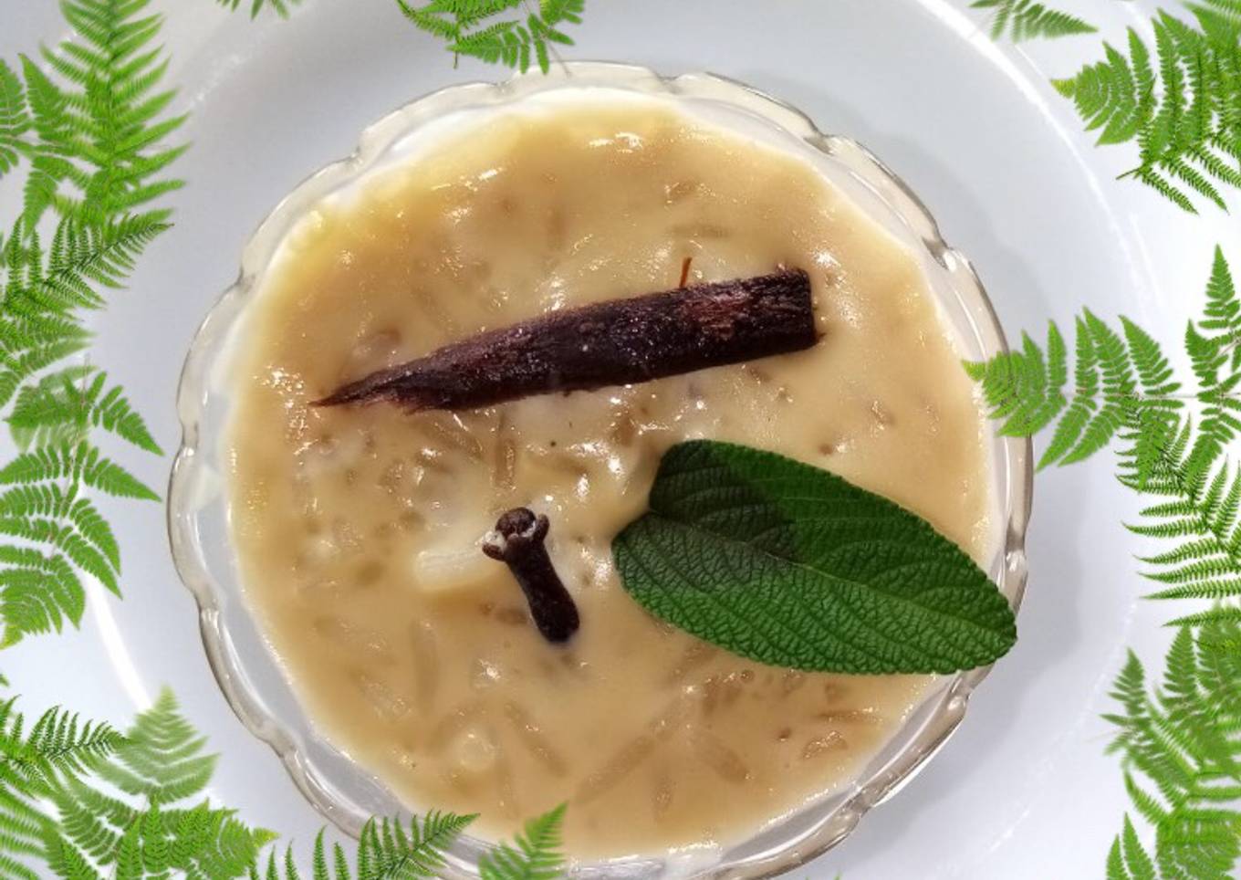 - Lave el arroz, deje en remojo por 1 hr, ponga en un recipiente 2 Tazas de leche, cuele arroz con la leche, agregue astillas de canela y clavos de olor, cocine por 10 min a temperatura alta.