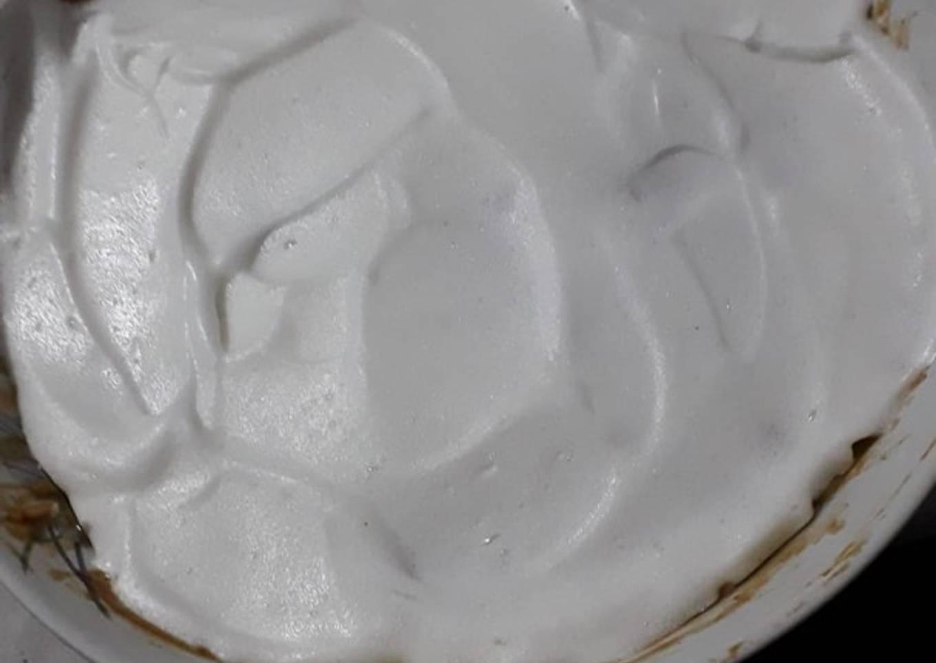 - Por otro lado separa 4 claras de huevo y mezclala con 4 cucharadas soperas de azúcar. Mezclalas con batidora hasta formar un chantilly. Y colócalo arriba del arroz con leche.