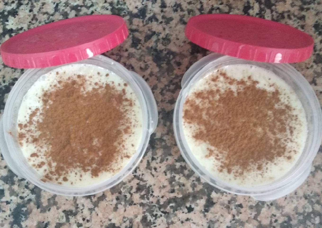 - Sacamos del fuego, dejamos reposar 5 minutos, removemos y lo colocamos en los recipientes que luego té lo vas a comer, espolvoreas por encima canela en polvo al gusto y a la nevera cuando este frío. BUEN PROVECHO
