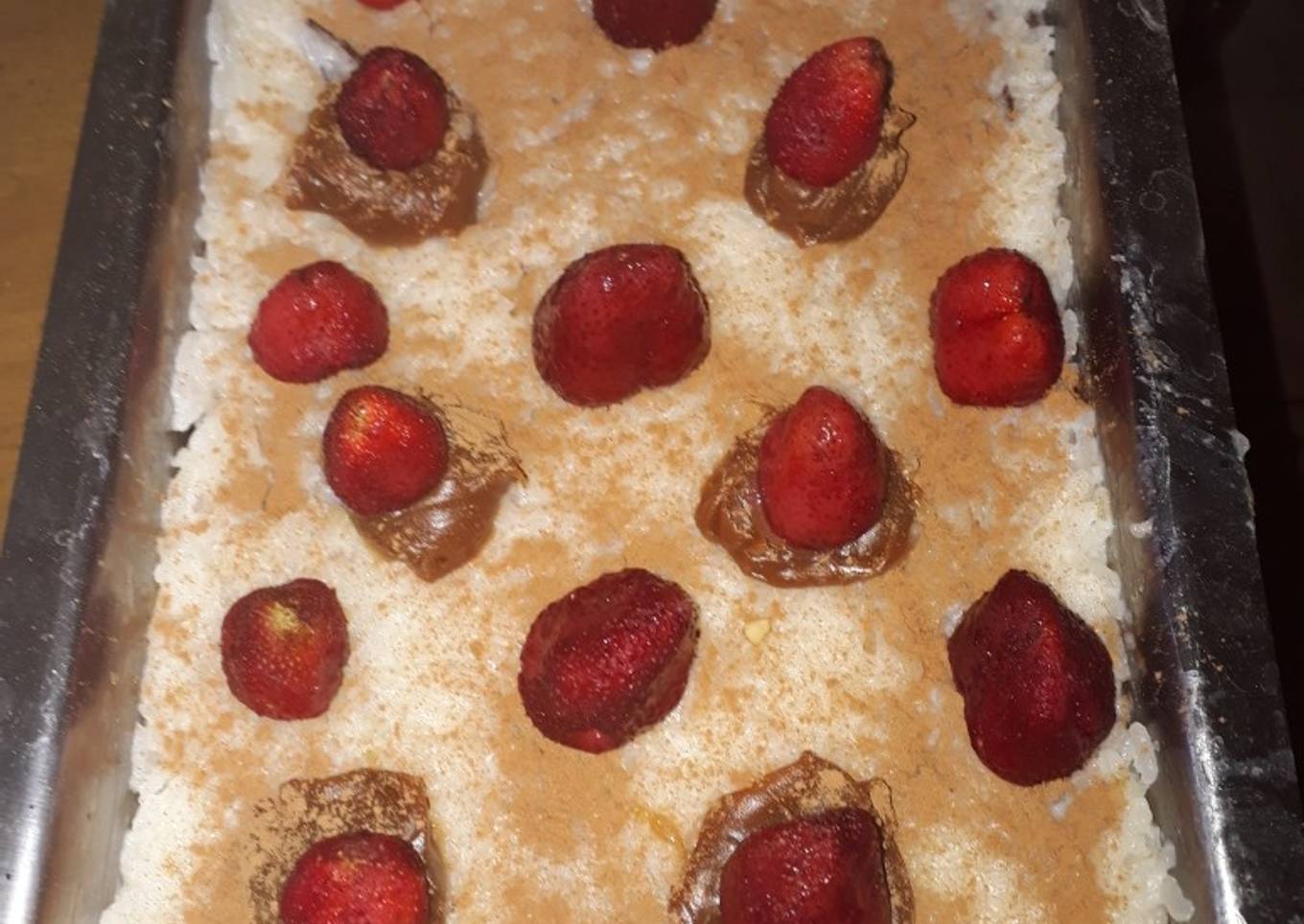 - Agregar el arroz restante y decorar con dulce de leche. Y Frutillas (optativo)