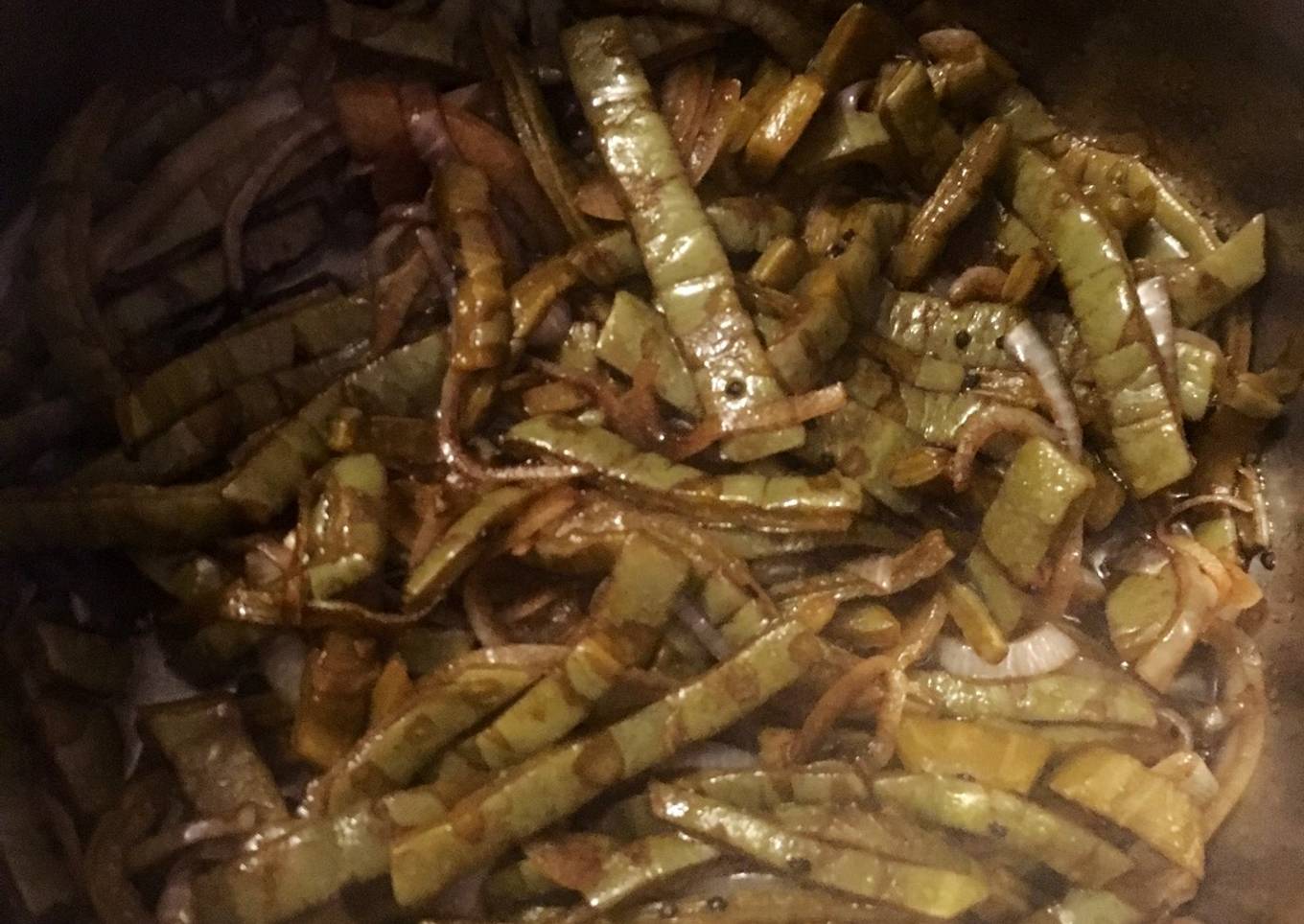 - Poner aceite en una sartén o wok grande ya caliente agregar los nopales 10 minutos y agregar la cebolla cortada en julianas delgadas.