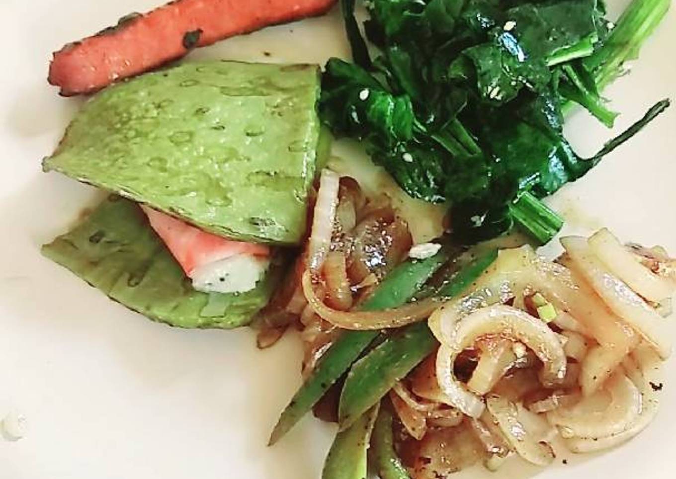 - Cortar por la mitad un nopal y rellenar con el jamón y el queso