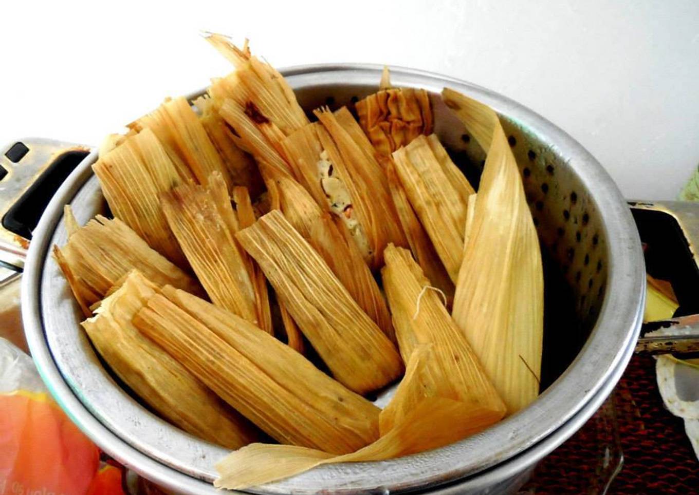 - Tomar una hoja y sobre la palma de la mano embarramos la hoja por el centro doblamos los laterales de la hoja para cerrar el tamal, y al final la punta que es donde hace pico la hoja. Doblado el tamal se acomoda en la vaporera con lo abierto hacia arriba, se cuecen a fuego alto hora y media, se dejan enfriar y sirven con atole.