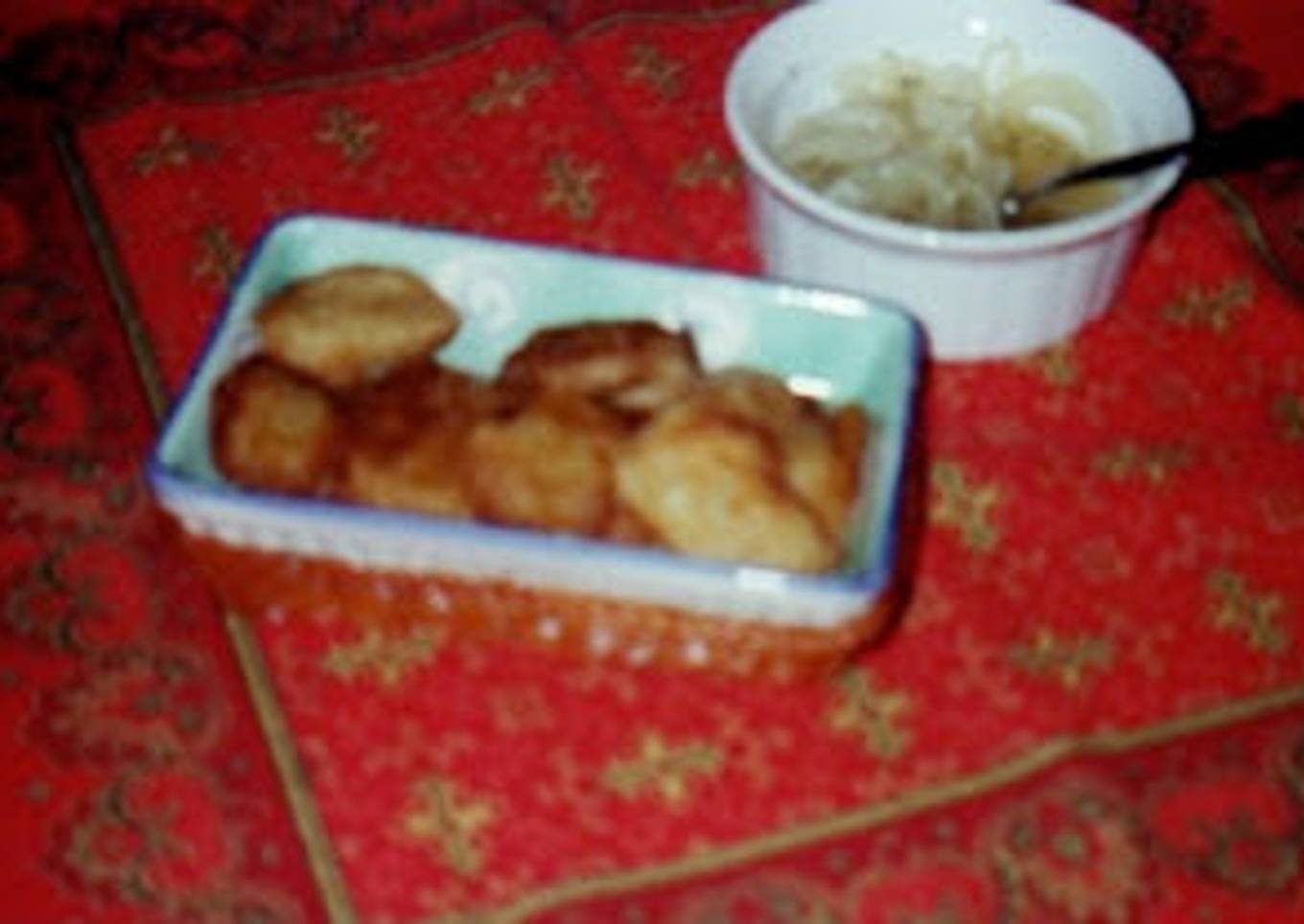 Aparte se hace un ESCABECHE con cebolla en rebanadas que se desflema con agua con bastante vinagre y orégano.