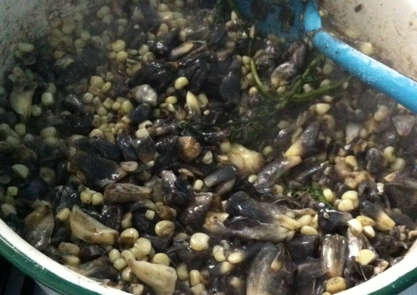 - Se le agrega epazote, sal y chile Serrano o jalapeño y esperar a que suavice el elote y huitlacoche.