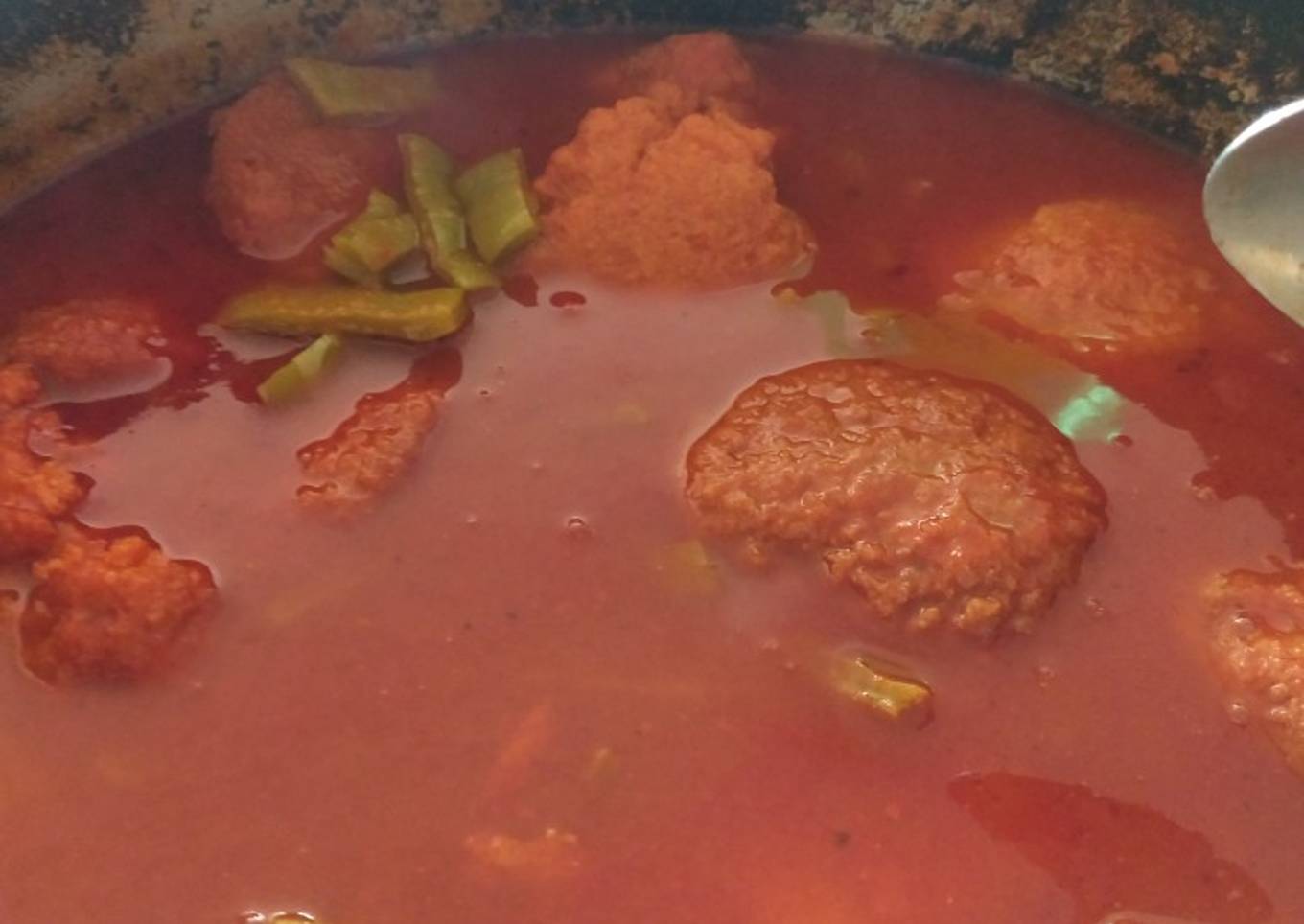 Tortitas de camarón con nopales en salsa roja, ¡para chuparse lo